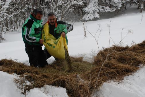 Abant ve Yedigöller'de bulunan Yaban Hayatı Geliştirme Sahaları'nda geyiklerin karla kaplanan ormanlarda yiyecek bulmalarının zorlaşması üzerine, Bolu Milli Parklar Av ve Yaban Hayatı Başmühendisliği ekipleri harekete geçti. Kar motosikleti ile ormanın derinliklerine kadar inen ekipler, hayvanların geçiş bölgelerine ve beslendikleri yerlere özel olarak hazırlanan yemleri bıraktı.