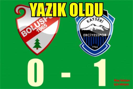 Boluspor kendi sahasında oynadığı Erciyesspor maçında 11. dakikada yediği golle ile sahadan bir sıfır mağlup ayrıldı. Bu sonuçla Boluspor liderlik koltuğunuda bırakmak zorunda kaldı. Kırmızı Beyazlı ekip maçın 11. dakikasında Bikoko'nun ayagından yediği gol ile mağlup oldu. Boluspor kalesini 11. dakikada golle tanıştıran Bikoko Erciyesspor’un 1-0’lık öne geçmesini sağladı. İkinci yarı karşılıklı yapılan ataklardan gol çıkmayınca Kırmızı beyazlı ekip sahadan yenik ayrıldı. Bu sonuçla liderlik koltuğunu'da bırakmak zorunda kalan Boluspor ligde altıncılığa düştü. (Haberin detayı EXPRESS'TE)