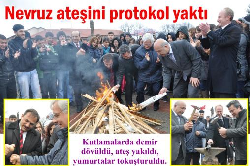 Salon programının ardından kampüs meydanındaki kutlamalara geçildi. İlk önce örs üzerinde demir döven protokol üyeleri daha sonra, yumurta tokuşturdu. Nevruz ateşini Bolu Vali Yardımcısı Ömer Eru, Bolu Belediye Başkan Yardımcısı İsmail Yamantürk, AİBÜ Rektörü Prof. Dr. Hayri Coşkun birlikte yaktı. Yakılan ateşin üzerinden önce protokol üyeleri ve öğretim üyeleri atladı. Hocalarından sonra Abant İzzet Baysal Üniversitesi öğrencileri de Nevruz ateşinin üzerinden atladı. Alanda büyük bir Türk bayrağı da açan öğrenciler demir döverek, yumurta tokuşturarak ve ateş üzerinden atlayarak Nevruz coşkusunu doyasıya yaşadı.