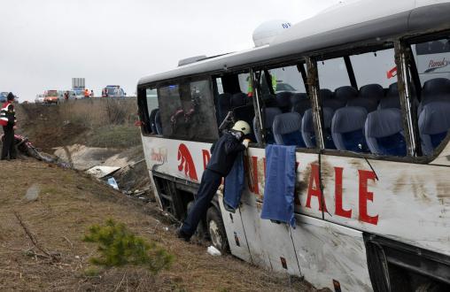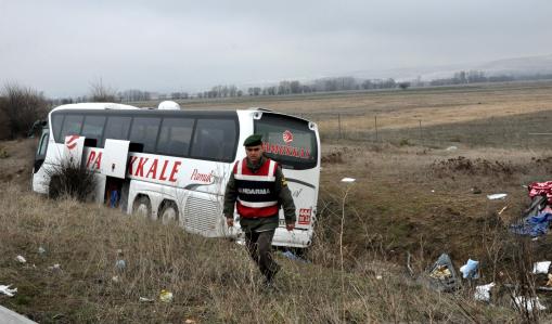 Kaza, dün saat 13:45 sıralarında TEM Otoyolu'nun Gerede gişeleri çıkışına bir kilometre kala meydana geldi. İstanbul'dan Ankara istikametine giden Erol Çelik idaresindeki 50 DK 082 plakalı yolcu otobüsü, sürücünün direksiyon hakimiyetini kaybetmesi sonucu bariyerleri aşarak şarampole yuvarlandı. İçinde 15 yolcusu bulunan otobüs metrelerce sürüklendikten sonra toprağa saplanarak durabildi. Facianın eşiğinden dönüldüğü kazada, sürücü Erol Çelik'le birlikte muavin ve 13 yolcu olmak üzere toplam 15 kişi yaralandı. Kaza sonrası savaş alanına dönen alanda yaralılara müdahale edildi. 112 Acil Servis ekipleri, ilk müdahaleyi olay yerinde yaptıktan sonra yaralıları ambulanslarla Gerede Devlet Hastanesi'ne kaldırdı.