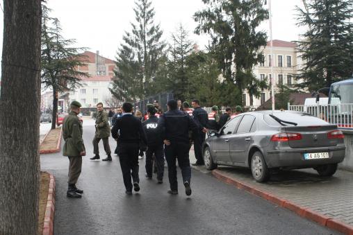 Adliye önünde 20 dakika süren kavga süresince tüm adliye çalışanları pencerelere çıktı. Yoldan geçen vatandaşlar kavgayı seyretmek içim kaldırımda kalabalıklar oluşturdu.