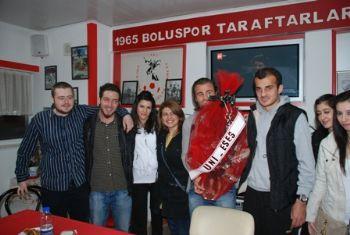 Boluspor şampiyonluk yolunda zordu Gaziantep Belediyespor karşılaşması öncesi 1965 boluspor Taraftarlar Derneği ve Cadde 14 taraftar gurubu iki yıldız oyuncumuza zorlu karşılaşma öncesi moral verirken başarı dilediler. Dernek adına konuşma yapan Zikrullah Büyüktopaç her iki oyuncumuz Yaser Yıldız ve Erdem Özgenç'e gerçekleştirdikleri ziyaretten dolayı teşekkür etti ve Gaziantep Belediyespor karşılaşmasında başarılar diledi. Taraftarların sorularına samimiyetle cevap veren her iki oyuncu arasında en çok soruyu golcü oyuncu Yaser Yıldız aldı. Kırmızı Beyazlı taraftarlar Yaser bol bol sorular iletirken, Yaser Yıldız da taraftarların sorularını tek tek cevap verdi. Boluspor ikinci takım kaptanı Erdem Özgenç Gaziantep Belediyespor karşılaşması öncesi taraftarlara galibiyet sözü verirken " Sahaya çıkıp elimizden gelen mücadeleyi gösterip üç puan alacağız, almak içinde antrenmanlarımızı ona göre yapıyoruz" dedi. Konuşmaların ardından 1965 Boluspor Taraftarlar Derneği Başkanı Yaser Yıldız'a dernek saati ve dernek atkısı takdim ederken Erdem Özgenç'e ise dernek atkısı takdim ettiler. Cadde 14 taraftar grubu gruplarının birer atkısını her iki oyuncumuza hediye ettiler. 1965 taraftarlar derneğinin organize ettiği toplantıda misafir olarak katılan Üni Es-Es taraftar gurubu da iki oyuncumuza şampiyonluk yolunda başarılar dilerken " Ne mutlu ki Boluspor da 12 gol atan oyuncu var. Ne mutlu ki ligin en çok gol atan takımı onun içinde Boluspor şampiyonluğu hak ediyor. Bizde kendilerini Süper lig de görmek istiyoruz ve bu çiçeği tüm Boluspor futbol takımı oyuncuları adına size takdim ediyoruz" dediler. Gecede futbolcuların çok sevdiği Yaşar'da bulunurken Erdem Özgenç ile aralarında bol bol espriler yapmaları konukları güldürürken hoş dakikalar yaşandı. Sohbet toplantısının sonunda toplu olarak hatıra fotoğrafı çektirildi.