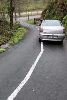 RİZE’de ancak bir otomobilin geçebildiği asfaltla kaplı yolun ortasına, sollama yasağını ifade eden düz çizgi çizildi.