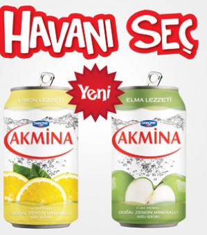 Gençlere gün içindeki susuzluklarını giderme ve ferahlama ihtiyaçlarını en sağlıklı şekilde karşılama imkanı sunan Akmina, yeni konseptiyle gençlerin havalarını seçmelerine de yardımcı oluyor. Akmina, Havanı Seç konseptiyle kendini ferah hissetmek isteyenlere Havası Ferah Limon’u, havasını değiştirmek isteyenlere de Havası Kışkırtıcı Elma’yı öneriyor. Akmina bu yeni lansmanı ile gençlerin en çok tercih ettiği sağlıklı ve havalı içecek olma yolunda emin adımlarla ilerliyor. Eşsiz Bolu Akkaya kaynağından çıkarılan Akmina dengeli mineral yapısı sayesinde düşük sodyum oranı ile fark yaratıyor.