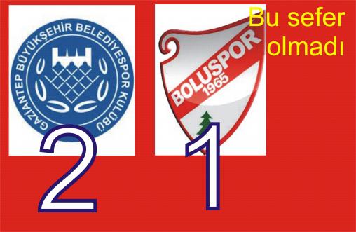 Son dakikalarda Caner ve Ferhat Kiraz'ın önemli pozisyonlarından yararlanamayan Boluspor bu sefer son dakika golü bulamadı. 10 kişi kalan Gaziantep Büyükşehir Belediyespor'a deplasmanda malup oldu.