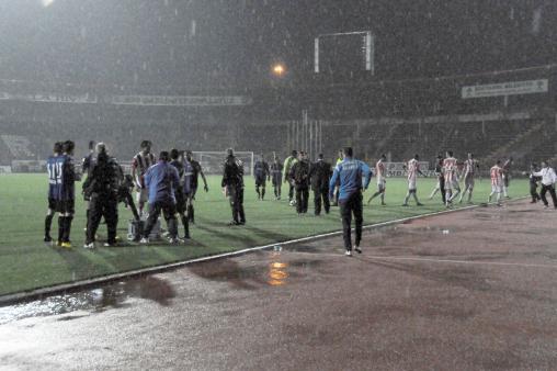 43. dakikada yoğun yağışın etkisiyle aydınlatma sisteminde oluşan arıza nedeniyle maça 12 dakika ara verildi.