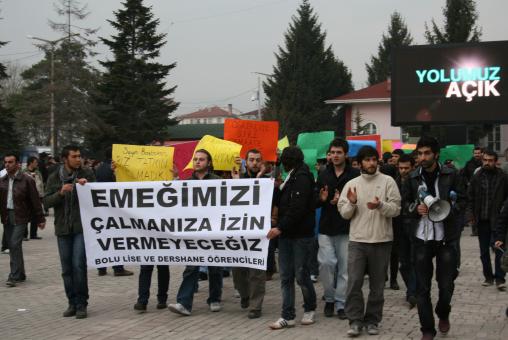YGS’de şifreleme iddialarını protesto etmek için Hükümet Meydanı'nda toplanan yaklaşık 100 öğrenci ve velileri, ellerindeki ‘YGS’de şifreye son’, ‘Hakkımızı Söke Söke alırız’, ‘Zaman'dan 30 kupona şifre’, ‘Cin Ali istifa’, 2Lütfen şifreyi giriniz’, ‘Emeğimizi çalmanıza izin vermeyeceğiz’ yazılı dövizlerle İzzet Baysal Caddesi'nden, Bankalar Meydanı'na yürüdü. Slogan atarak yürüyen öğrencilere, apartmanların balkon ve pencerelerine çıkan bazı vatandaşlar alkışlarla destek verdi. Fikirlerinin karartıldığını söyleyen öğrencilerin yaptıkları açıklamada şunlar yer alıyor; “Aileler, cemaat dershanelerinin şifreli eğitiminden medet umar hale gelsin, gençler cemaatlere bu yolla daha da yaklaşsın isteniyor. Hayır! Bu ülkenin insanları onurludur. Emek hırsızlığı yapanlara da, bunlara çanak tutanlara da onurumuzu çiğnettirmeyeceğiz. Liseliler bugün kendilerine yakışanı yapacaktır. Ülkenin dört bir yanından Yükselen sesimize AKP ve cemaat kulaklarını tıkayamaz. Başbakan, ÖSYM'nin açıklamalarından tatmin olduğunu söyledi. Bizler yalanlarla tatmin olacak bir nesil.”
