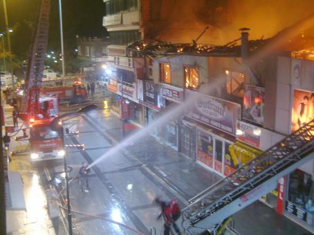 Bu arada, yangında 5 iş yerinin tamamen yandığı, 8 iş yerinde büyük oranda maddi hasar oluştuğu öğrenildi.