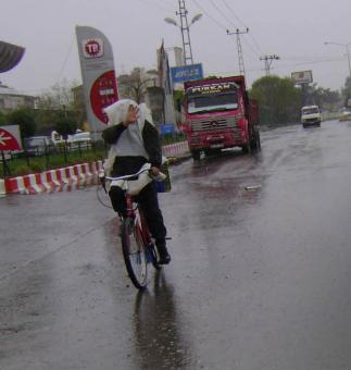 Bolu ve çevresinde günlerdir etkili olan yağmur hayatı olumsuz etkiledi. Şehir merkezinde bazı caddelerde su birikintileri oluşurken, yağmura dışarıda yakalanan vatandaşlar yağmurun dinmesini alışveriş merkezlerine girerek beklediler. Bazı vatandaşların yağmurdan korunmak için ilginç yöntemlere başvurması ise renkli görüntüler oluşturdu. Yağmurun altında bisikletiyle seyir halinde olan bir vatandaş ilginç bir görüntü oluşturdu. Yağmurdan korunmak için büyük bir naylon poşeti üstüne geçirip yoluna devam eden vatandaş, trafikte ilginç enstantaneler oluşmasına neden oldu.