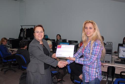 Proje kapsamında ev hanımlarına ücretsiz bilgisayar kursu veriliyor. 20 saatlik dersin ardından bilgisayar öğrenmenin mutluluğu ile kursu bitiren ev hanımları, projede emeği geçenlere teşekkür ederek, “Buraya gelmeden önce hiçbir şey bilmiyorduk. Şu anda her şeyi öğrendik. Teknoloji ile buluşmak çok güzel. Sıfırdan başladık. Yurt dışında olan çocuklarımızla görüntülü görüşüyoruz. Haberleri ve gazeteleri okuyoruz. Hocalarımıza teşekkür ediyoruz” dediler.