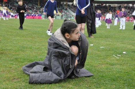 Kocaeli Büyükşehir Belediyesi’nin davetlisi olarak 41 ülkeden gelen 1000 çocuğun da katıldığı İzmit İsmetpaşa Stadı’nda yapılan kutlamalar için, çocuklar stada saat 08.30’dan itibaren gelmeye başladı. Hava sıcaklığının 8-9 derece dolayında olmasının yanı sıra kıyafetleri de ince olan çocuklar, saat 10.30’da başlayan kutlamalara kadar birbirlerine sarılarak ısınmaya başladı. Konuşmalar da uzayınca üşüyen çocuklar biran evvet gösterilerin başlamasını bekledi. Gösterilen sırasında hareketlenen çocuklar bu sayede ısınabildi.