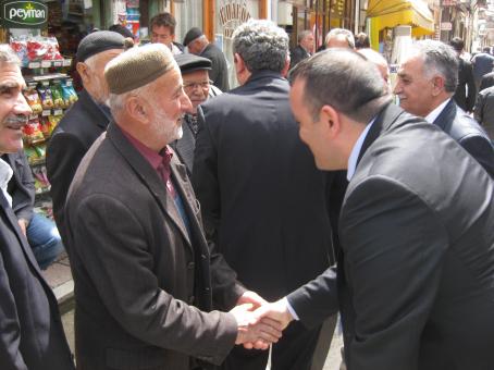 Yoğun ilgi ile karşılanan DP’liler duadan sonra esnaf ziyaretlerini sürdürdü.