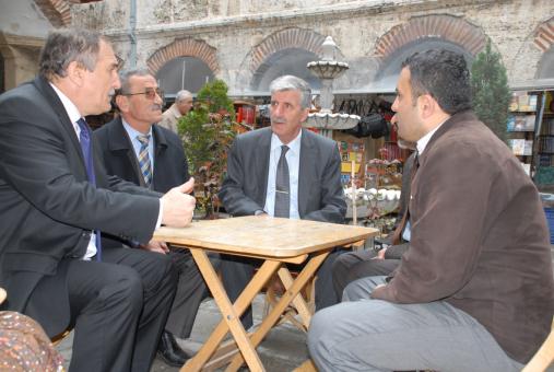 Belediye Başkanı Alaaddin Yılmaz ikram sonrası Taş Han esnafını da ziyaret ederek hayırlı işler dileklerinde bulundu.