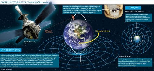 ABD Ulusal Havacılık ve Uzay Dairesi (NASA) tarafından 2004 yılında uzaya gönderilen Gravity Probe B (Yerçekimi Keşif Aracı B) Dünya’nın yörüngesinde olağandışı dalgalanmalar tespit etti. Gravity Probe B, uzay-zamanın büküldüğünü ve Dünya döndükçe etrafında kıvrıldığını ortaya çıkardı.