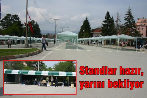 Yarın başlayacak olan şenliklerde kullanılacak olan stantların içi bugünden doldurulmaya başlandı.