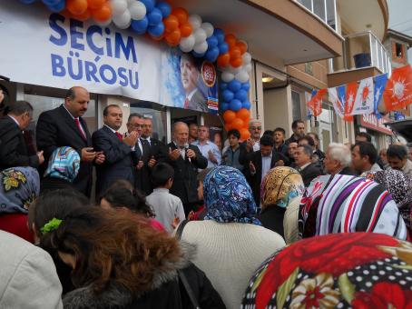 Son olarak Sağlık Mahallesi’nde açılan Seçim bürosuna Ak Parti İl Başkanı Ömer Sayın, Belediye Başkanı Alaaddin Yılmaz, Milletvekilli adaylar Ali Ercoşkun, Fatih Metin, Merkez İlçe Başkanı Erol Özak ve Kadın Kolları Başkanı Ayferi Yılmaz ve çok sayıdaki vatandaşın katılımı ile gerçekleşti. Açılışta ilk olarak söz alan AKP İl Başkanı Ömer Sayın, Sağlık Mahallesinden gerekli desteğin geleceğinden emin olduğunu vurguladı. Sayın’ın ardından söz alan Milletvekili Adayı Fatih Metin ise, seçim çalışmalarına 1 ay önce başladıklarını belirtti. Metin, “Sağlık Mahallesi bizim için önemli, neden derseniz her seçimde diğer siyasî partilere fark atmamızı sağlayan Sağlık Mahallesidir. Bolu’da oluşan farkı, Sağlık Mahallesi’ni oluşturan kardeşlerimiz sayesinde yakaladık. Sağlık Mahallesi’nden aldığımız fark atan oyları bu seçimlerde de alarak AK parti’nin tek başına iktidarına tekrar kavuşacağız” dedi. AKP’ye verdikleri destekten dolayı Sağlık Mahallesi sakinlerine teşekkür ederek sözlerine başlayan Milletvekili Adayı Ali Ercoşkun, “Başbakanımız Sayın Recep Tayip Erdoğan’ın önderliğinde Müslüman coğrafyada, ezilenlerin yanında dik durmaya devam ediyor. Bu dik durmada alınan en büyük güç sizlerin partimizin arkasında dimdik durmasından kaynaklanıyor. Bundan önce olduğu gibi bundan sonra da vereceğiniz destekler için şükranlarımı sunuyorum” diye konuştu. 12 Haziran seçimlerinde de Sağlık Mahallesinden oy beklediklerini dile getiren Belediye Başkanı Alaaddin Yılmaz, önümüzdeki seçimin sadece Türkiye’nin seçimi değil, dünyada ezilmiş Müslüman ülkelerin de kader seçimi olduğunu kaydetti.
