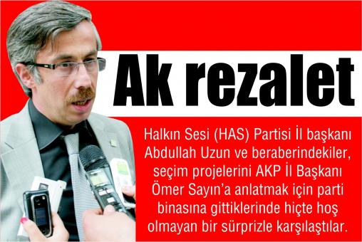 HAS Parti İl Başkanı Abdullah Uzun seçim projelerini AKP il başkanı Ömer Sayın ile paylaşmak için AKP il binasına bir ziyaret gerçekleştirdi. Daha önce Ömer Sayın’ı arayarak randevu alan HAS Parti İl Başkanı ve beraberindekiler saat 14.00’da AKP İl binasına gittiklerinde hiçte hoş olmayan bir sürpriz ile karşılaştılar. HAS Parti heyetine saat 14.00’da randevu veren Ömer Sayın ziyarete katılmayarak, nezaketsiz bir tavır sergiledi. HAS Parti heyetini yaklaşık yarım saat beklettikten sonra Partiyi arayarak haber veren Ömer Sayın Ankara’da olduğunu söyleyerek ziyarete katılamayacağı için HAS parti heyetinden özür diledi. Bunun üzerine Parti binasından ayrılarak bir açıklama yapan HAS Parti İl Başkanı Abdullah Uzun “Herkesin program haricinde işi çıkabilir, bunu anlayışla karşılayabiliriz. Siyasette ve İnsanlığın gerektirdiği bir nezaket vardır. Dün arayarak almış olmuş olduğumuz randevunun amacı Bolu’da ki siyasete bir format kazandırmaktı. Türkiye’deki siyaset çirkinleşti maalesef. Genel başkanlar nezdinde izlediğimiz kavgacı küfürcü siyasetin Bolu’ya da ulaşmaya başladığını biz Has Parti olarak hissettik. Her şey siyaset, oy, milletvekili çıkartmak değil. Bolu ufak bir il, Ankara, İstanbul, İzmir belki kavgacı üslubu kaldırabilir ama burası Bolu. Buradaki siyasi partilerde kendi genel başkanları nezdinde kavgacı üsluba bulaşmamaları için biz bir nezaket ziyaretinde bulunduk. Maalesef sayın başkan yerinde yoktu. Randevumuzun iptal edilmesiyle ilgilide şuana kadar herhangi bir şey söylenmedi. Sayın başkanın Ankara’da olduğunu bana söylediler ve sayın başkan özür diledi. İktidar partisi olabilirler o zaman hiç kimseye randevu vermeselerdi. Tek başlarına çalışmalarını yapsınlar, seçim çalışması da yapmasınlar. Bunun adına demokrasi denmez. Teokratik ve Holigarşik düzen denir. Adaylar bu kadar çalışmasınlar ve proje için kafa yormasınlar, projelerini çıkartmasınlar. 12 Haziran’a kadar yatsınlar kalksınlar, 13 Haziran’da iktidarda desin ki şu kadar oy aldık şu kadar milletvekili çıkarttık. Bu kadar kalp kırmaya gerek yok. 12 Hazirandan sonra Bolu’da herkes birbirinin yüzüne bakacak. Özellikle il başkanları olarak, tavırlarımıza biraz daha dikkat etmemiz gerekiyor. Siyasi partiler birbirlerinin düşmanı değildir. Biz AKP’yi ne kadar kendimize yakın görüyorsak CHP, MHP ve İşçi partisini de kendimize yakın görüyoruz. Onlar bizim rakiplerimizdir. Düşmanlarımız değildir. Bu sözleri sayın başkanın makamında söyleyecektik. Ve bolu için hazırladığımız kalkınma projemizi takdim edecektik. Kendilerinden de bir ricada bulunacaktık. AKP Milletvekili adaylarının ve diğer siyasi partilerin hazırladıkları projeleri getirmelerini ve Bolu kamuoyunda tartışılmasını isteyecektik. Hangi proje en faydalıysa o projeyi seçilen milletvekillerinin koltuğunun altına koyalım, o milletvekilleri ortak halkın seçtiği projeleri uygulasınlar ve diğer seçilemeyen adaylarda milletvekillerini takip etsin diyecektim, ama sayın başkan gelmedi” dedi.