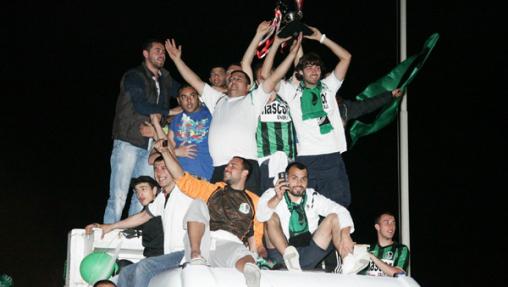 Antalya Mardan Stadı'nda yapılan play-off mücadelesinde Konya Torku Şekerspor, Bugsaş Spor ve Bandırmaspor'u mağlup ederek, Bank Asya 1. Lig'e yükselen yeşil-siyahlı futbolcular ve teknik ekip, Sakaryasporlu taraftar grubu ''Tatangalar'' tarafından TEM Otoyolu gişelerinde karşılandı. Yaklaşık 30 araçlık konvoy eşliğinde, bindikleri kamyonun üzerinde şehir turu atan futbolcular, Kent Meydanı'na ulaştı. Yaklaşık 2 bin kişilik taraftar grubunun tezahüratları arasında yeşil-siyahlı futbolcular ve teknik direktör Şaban Yıldırım, kupayı havaya kaldırarak sevinç gösterisinde bulundu. Sakarya Valisi Mustafa Büyük, play-off mücadelesinde şampiyon oldukları için çok mutlu bir gün yaşadıklarını söyledi. Sakaryaspor'un spor ve futbol geleneği yüksek bir takım olduğuna dikkati çeken Büyük, ''Bu şehir de bununla iç içe yaşıyor. Olması gereken yer mutlaka Süper Lig'dir ama çok önemli bir merhale geçilmiş oldu, Bank Asya'ya çıkmak... İnşallah burada da başarılı olacağız. Ben tam olarak güveniyorum, Sakaryaspor'a da şehir halkına da. Gelecekte eski güzel günlere döneceğiz diye ümit ediyorum'' dedi. Kulüp başkanı Halit Evin ise yoğun bir katılımla şampiyonluğu kutladıklarını kaydederek, ''Mutluyuz, gururluyuz. İnşallah Bank Asya'da da bu seviyeyi yakalarız ve Süper Lig'e çıkarız'' diye konuştu. Havai fişek gösterilerinin ardından taraftarlar, maytaplar eşliğinde şehirde kısa bir tur attı.