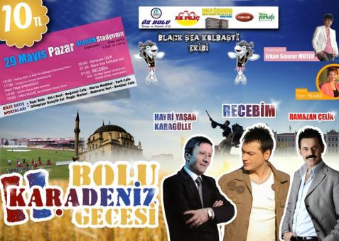 Bolu Atatürk Stadyumunda 29 mayıs Pazar akşamı Karadeniz Fırtınası esecek. Bu yıl ikincisi düzenlenecek olan Bolu Geleneksel Karadenizliler Gecesinde Hayri Yaşar Karagülle, Recebim ve Davut Güloğlu katılarak sahne alacak. Ayrıca Bolu Blacksea Kolbastı Ekibi’de bir gösteri yapacak.