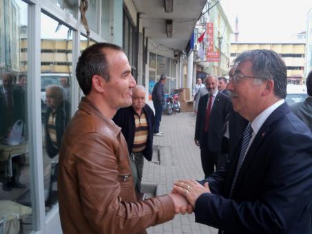Belediye Meydanından başladıkları geziyi Büyük Kökez Çeşmesine kadar sürdüren heyet esnafımızın ve halkımızın büyük bir teveccühü ile karşılaştı. Daha sonra Aktaş Mahallesi’ni de gezen heyet çalışmalarına burada devam etti. Kader seçiminde, halkımızın ellerini vicdanlarına koyarak oy kullanmalarını isteyen Yapıcı’nın enerjisi herkesin takdirini topladı. Girip çıkmadığı dükkân, yazıhane ve kahvehane kalmayan Yapıcı, yoğun ilgiden memnun kaldı. Girdiği kahvehanelerde halkımızın “Hoş geldin vekilim” yapıcının duygulanmasına sebep oldu. Seçim çalışmalarını anlatan Yapıcı, daha güzel yarınların siz değerli Boluluları beklediğini dile getirdi. Başka bir dükkânda geçmiş dönemlerde meclise gönderdiğimiz vekillerin Bolu için bir şey yapmadıklarını düşünen vatandaşımıza, Yapıcı, “Ona göre değerlendirme yapmanız lazım. Sizi kimin temsil etmesini istediğinize bakacaksınız. Bir de projelere bakacaksınız. Bizler ne yapacağız, onlar ne yapacaklar. Anayasa olarak, nasıl bir anayasa öneriyorlar. Teröre, ekonomiye nasıl bakıyorlar. İşçiye, memura, çiftçiye, emekliye, esnafa, dar gelirliye nasıl bakıyorlar, değerlendireceksiniz. Sizin yanınızdalar mı yoksa başka bir noktadalar mı. Ona göre oy vereceksiniz. Bir çözüm var. Çare bir oyunuz. Bize bir oy” dedi.