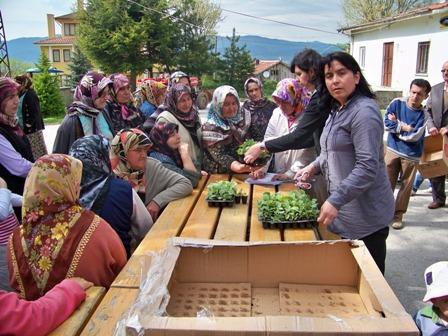 Çamyayla köyünde yapılan toplantıda yetiştiriciliği anlatılan Altın çilek (yer kirazı) ile ilgili üreticilerden gelen yoğun talep üzerine, Ziraat Teknikeri Sabri Yüksel, Tarım danışmanı Gülriz Ersöz ve Tarım danışmanı Ayşe Ekdioğlu’nun ortaklaşa çalışmaları doğrultusunda talep edilen fideler temin edilerek üreticilere dağıtıldı. Bolu’nun iklim şartlarına uyumu denenecek olan Altın Çilek’ in yaygınlaştırılması amacıyla yapılan bu çalışmada yaklaşık 5 bin 200 adet Altın Çilek fidesi muhtelif bölgelerde bulunan köylerdeki yetiştiricilere dağıtımı yapıldı.