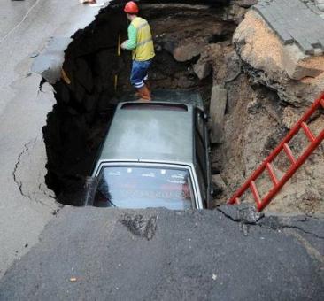 Çukura düşen otomobilin sahibi Yusuf Yücel ise, yolun bir anda çökmeye başladığını otomobili ileri alamadan aracın çukura düştüğünü söyledi.
