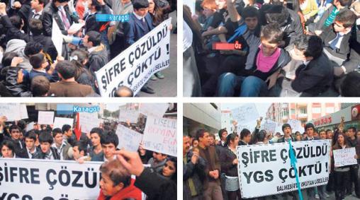 Türkiye Komünist Partisi'nin (TKP) Balıkesir'de organize ettiği YGS protestolarında başı çeken A. Gönüllü, A. A. Alin ve S. Uçar adlı öğrencilerin, fen lisesinde cep telefonu aracılığıyla cevapları arkadaşlarına gönderdikleri tespit edildi. C. Karagöl, O. Özekçin ve B. Öz isimli öğrencilerin ise Balıkesir'deki bir marketten hırsızlık yaparken gösteren kamera kayıtları belirlendi. İhbarlar üzerine başlatılan soruşturmada Balıkesir Ziraat Bankası Fen Lisesi'nde okuyan 8 öğrencinin organize kopya çekerek yüksek not aldıkları ve bu sayede YGS sınav puanlarına eklenen okul mezuniyet ortalamalarını yükselttikleri tespit edildi.