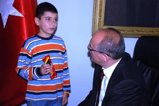 Haftanın hemen her günü siyasetçisinden vatandaşına onlarca kişiyi makamında ağırlayan Vali Özçimen’in bu seferki konuğu minik bir öğrenci oldu. Sakarya İlköğretim Okulu 4. sınıf öğrencisi Enis Bingöl, Vali Özçimen’le tanışmak için Bolu Valiliği’ne geldi. Minik Enis’i kırmayan Vali Özçimen, kendisi ile uzun uzun konuştu. Vali Özçimen ilk olarak minik Enis’e derslerinin nasıl olduğunu sordu. Derslerinin iyi olduğu yanıtını veren Enis, Vali Özçimenden çikolataları kazandı. Vali Özçimen daha sonra ise Enis’e tuttuğu takımı sordu ve Enis’ten Beşiktaş’lı olduğunu öğrendi.