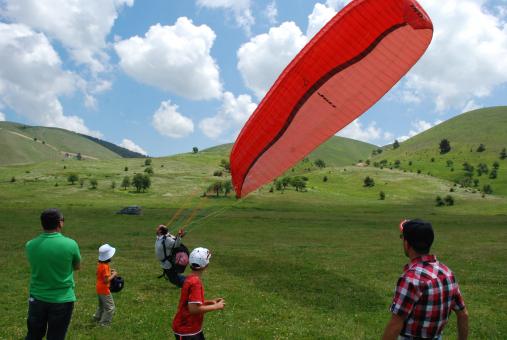 Ankara, İstanbul ve Eskişehir'den, Bolu'nun doğal güzellikleriyle ünlü Abant Tabiat Parkı Çepni Yaylasına gelen yamaç paraşütçüleri, yaptıkları atlayışlarla Abant semalarında heyecanlı dakikalar yaşadı. Paraşütçüler, yaylada otlayan büyük ve küçükbaş hayvanların arasına inişler yaparak ilginç görüntülere sahne oldu.
