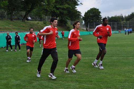 Otelin sahasında yarım saat süren antrenmanda oyuncular açma germe hareketlerinin ardından düz koşu yaptı. Teknik direktör Mehmet Özdilek, antrenman boyunca yardımcılarıyla kamp programını yaptı. Problemsiz bir kamp başlangıcı yaptıklarını belirten Özdilek, "Aramıza yeni katılan ve aramızdan ayrılan oyuncular var. Sağlıklı bir ortamda iyi bir değerlendirme yapmak istiyoruz. Ön hazırlık periyodu takımlar için çok önemli. Oyuncu arkadaşlarımızı yorucu bir çalışma dönemi bekliyor. Tatilden yeni geldiler, adapte olmaları bazen sıkıntı yaratıyor. 24 oyuncuyla çalışmalara başladık. Zaman içerisinde bünyemize yeni katılım olur mu olmaz mı onun değerlendirmesini yapacağız. Bugün itibariyle mevcut kadromuz oluşmuş durumda. Bizim için problemsiz bir kamp başladı" diye konuştu. Yeni sezonda hedeflerinin tesisleşme ve stadyum yapımı olduğunu vurgulayan Özdilek, "Bizim olduğumuz yerde hedefler bitmez. Antalyaspor'un yükselen bir grafiği var, bunu daha yukarılara taşımak istiyoruz. Camia olarak eksikliğini duyduğumuz sıkıntılarımız var. Bunlardan biri tesisleşme ve kendi stadımızın olmayışı. Bununla ilgili de ciddi uğraşlar veriyoruz. Stadı doldurmak ve seyirciyle bütünleşmek bizim için çok önemli. Herkesin takdir ettiği, gıpta ile baktığı, oynadığı oyundan keyif aldığı bir Antalyaspor olacak. Bundan kimsenin şüphesi olmasın. Transferlerde çok sıkıntı çekmedik. İstediğimiz oyuncuları lig bitmeden bünyemize kattık. Çok hazırlıklı bir şekilde yeni sezona başlıyoruz" şeklinde ifade etti.