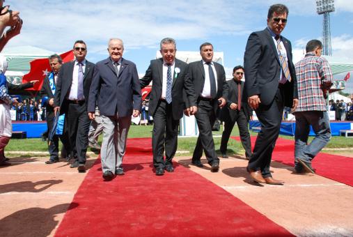 YÖK Başkanı Prof. Dr. Yusuf Ziya Özcan, AİBÜ’nün Bolu Atatürk Stadyumu’nda düzenlenen mezuniyet törenine katıldı. Törende, Vali İbrahim Özçimen, Belediye Başkanı Alaaddin Yılmaz, diğer protokol üyeleri ve aileler de yer aldı. YÖK Başkanı Prof. Dr. Özcan’ın konuşma yapacağı alana kadar kırmızı halı serildi. Öğrencilerin tören geçişi sırasında halılar kirlenmemesi için kaldırıldı. Geçiş tamamlanınca halılar tekrar açıldı.