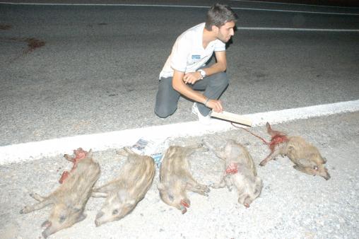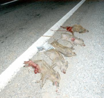 Türkiye’nin en büyük ve en işlet otoyolu konumundaki İstanbul-Ankara TEM Otoyolunun Dörtdivan-Gerede arasında 5’inci kilometrede çamlık araziden inerek arka arkaya yoldan geçmeye çalışan 5 yaban domuzu yavrusu plakası tespit edilemeyen bir kamyon sürücüsü tarafından çarpılarak telef edildi. Yaban domuzları karayolu ortasında tehlike yaratınca vatandaşlar tarafından yol kenarına çekildi.