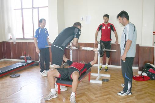 Antrenman 3 grubun kendi aralarında (5-2) top çalma oyunu ile başladı. Tam saha dayanıklılık çalışmasında yorulan futbolcular, minyatür kale etkinliği ve yarım saha çift kale maçıyla antrenmanı bitirdiler. Her yenilen golden sonra, hocaların gol yiyen takıma verdiği 20 şınav çekme cezası, çalışmaları daha eğlenceli hale getirdi. Gencer Cansev ve Alp Ergin hafif sakatlıkları nedeniyle çalışmaların son bölümüne katılmadılar.