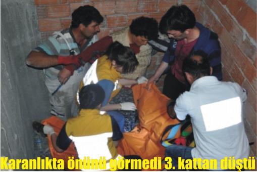 Sümer Mahallesi Cumhuriyet Caddesi üzerinde bulunan 3 katlı inşaat halindeki apartmana sıva yapmak için çıkan Nadir Şengül’ün eşi Fatma Şengül de inşaatta giderek eşine yardım etmek istedi. Karanlıkta ayağı tahtaya takılan Fatma Şengül dengesini kaybederek, 3. kattan asansör boşluğuna düştü. Eşinin çığlıklarını duyan Nadir Şengül, 112 Acil'e ihbarda bulunduktan sonra çevreden yardım istedi. Asansör boşluğuna inen Nadir Şengül, baygın halde olan eşinin yanında gözyaşı dökerek, "Allah'ım sen yardım et. 30 yıldır çalışıyorum böyle bir şey olmadı. Fatma'm sana bir şey olursa ne yaparım. Dayan gülüm" diyerek ağladı. Olay yerine gelen 112 Acil ekibi, çevredekilerin getirdiği merdivenle asansör boşluğuna inerek baygın halde bulunan Fatma Şengül'e müdahalede bulundu. Bir süre sonra kendine gelen Fatma Şengül, "Bir şeyim yok. Belim ağrıyor. Biraz da kolumda ağrı var" dedi. Eşinin yardımıyla ayağa kalkan Fatma Şengül, şişme yatağa uzanarak vatandaşların da yardımıyla asansör boşluğundan çıkartıldı. Ambulansa götürülen Fatma Şengül, tedavisi yapılmak üzere Köroğlu Devlet Hastanesi'ne kaldırıldı.