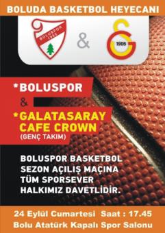 Galatasaray Cafe Crown (Genç ) Takımı ile ilk maçlarına çıkacak olan Boluspor Basketbol Takımı Cumartesi günü saat 18:00’de Bolu Gençlik ve Spor İl Müdürlüğü Kapalı Spor Salonunda karşılaşacak.