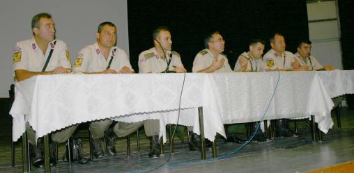 İl Kültür ve Turizm Konferans salonunda gerçekleşen toplantıya Bolu İl Jandarma Komutanlığı’ndan; Alay Komutanı Albay Cengiz Yıldız, Karakol Komutanı Kemal Gezgin, Bölük Komutanı Cebrail Kalır katıldı. Bolu İl Jandarma Komutanlığı’ndan muhtarlara, “Amacımız çıtayı biraz daha yükseltmek, Bolu’da biraz olsun suçluları azaltmak için uğraşıyoruz. Karakol komutanları ve bizlerle sorunlarınızı paylaşırsanız elimizden geldiğince sizlere yardımcı oluruz. Yaylalarınızda hırsızları cezp ettirecek kıymetli eşyalarınızı bulundurmayınız. Yaylada ki evlerinizde bakır tencere, tava, jeneratör, bakır musluk gibi eşyalar bırakıyorsunuz ve bu eşyalarda hırsızların dikkatini çekiyor. Hırsız, musluğu alacağım diye sizin lavabonuzu balyozla kırıyor ve sizi daha çok hasara uğratıyor. Kamyonlarınızın tırlarınızın içindeki benzinlere çok dikkat edin. Bilindiği gibi yakıt tanklarının kilitleri yok. Gittiğimiz birkaç köyde bu olayları yaşamıştık. Hırsızlar hortumu takıp 500 litre benzin çalmışlar ” diyerek konuşuldu.
