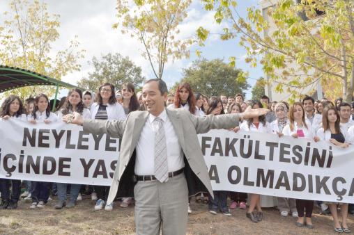 AİBÜ Tıp Fakültesi Anatomi Anabilim Dalı Başkanı Prof.Dr. Yasin Arifoğlu, emekli olmak için bir süre önce dilekçe verdi. Prof.Dr. Yasin Arifoğlu'nun dersine girdiği yaklaşık 250 öğrenci, emekliye ayrılmasını istemedikleri için bugün Morfoloji binası önünde toplanarak oturma eylemi yaptı. Öğrenciler, 'Yasin Hocam, evinizi ve biz çocuklarınızı terk etmeyin' yazılı pankartı binanın penceresine asarken, 'Neyleyim Tıp Fakültesini içinde Yasin hoca olmadıkça' yazılı pankartı tutarak alkışlarla Tempo tuttu. Prof. Dr. Yasin Arifoğlu'nun öğle tatilinden geldiğini gören öğrenciler, binanın giriş kapısını kapatarak, 'Yasin hoca bizi bırakma' diye bağırdı. Ellerini iki yana açarak öğrencilerin yanına gelen Prof. Dr. Yasin Arifoğlu, Bolu ve Abant İzzet Baysal Üniversitesi'nin kendisi için çok önemli olduğunu belirterek, "Ben olsam da, olmasam da siz burada çok iyi bir eğitim göreceksiniz. İnsanın hayatında bazı kararlar alması gerekiyor. Üniversitenin kurulduğu günden itibaren mesaimi, bilgi birikimimi sizlere aktardım. Sizleri kendi çocuğumdan hiç ayırmadım. Bu yüzden de kendi çocuğumu sizlerle birlikte aynı bölümde eğittim. Bu kararı aldığım için çok üzgünüm. Ama yapacak bir şey yok. Hepinizi çok seviyorum" dedi.