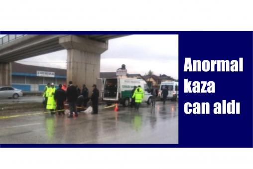 Düzce- Bolu D-100 Karayolunda sürücüsünün yağmur yağışı nedeniyle kayganlaşan yolda direksiyon kontrolünü yitirdiği otomobilin üstgeçit ayağına çarpması sonucu meydana gelen kazada 1 kişi öldü, 1 kişi yaralandı. Kaza, bu sabah, D-100 Karayolu Kaynaşlı Kavşağı Mevkii'nde meydana geldi. Düzce'den Bolu'ya giden Levent Eroğlu yönetimindeki 34 ERG 81 plakalı otomobil, sürücüsünün yağışlı hava nedeniyle kayganlaşan yolda direksiyon kontrolünü yitirmesi sonucu üstgeçit ayağına çarptı. Kazada bir otomobil kiralama firmasının sahibi olan Levent Eroğlu ağır yaralanırken, yanında bulunan bir başka otomobil kiralama firmasının sahibi Halil İbrahim Göçmen ise öldü. Yaralı Eroğlu, Düzce Atatürk Devlet Hastanesi'ne kaldırılarak tedavi altına alındı. Göçmen ve Eroğlu'nun, Bolu'ya bir ihale için geldiği belirlenirken, kaza ile ilgili soruşturma başlatıldı.