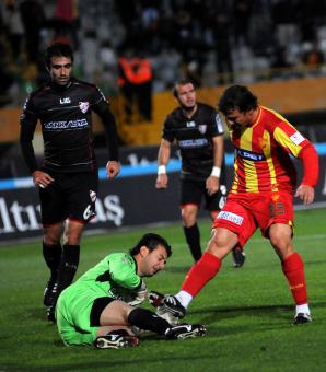 14. dakikada gelişen Göztepe atağında Korhan yaklaşık 30 metreden çok sert vurdu. Top üst direği sıyırarak dışarı çıktı.