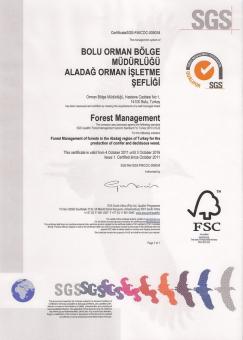 Dünyadaki tüm ormanların en uygun şekilde yönetilmesini teşvik etmek, ormancılığın sürdürülebilir orman yönetimi ilkelerine göre yürütülmesine yardımcı olmak, orman alanlarının korunmasını ve kalıcı varlığını sağlamak, bu uygulamaların uluslararası anlamda yaygınlaşmasını amaçlayan bir paydaşlar sistemi ve üyelik tabanına dayalı, kar amacı gütmeyen uluslararası bir kuruluş olan FSC (Orman Yönetim Konseyi) tarafından 1,5 yıl boyunca denetlenen Aladağ Orman İşletme Şefliği, 4 Ekim 2011 tarihinden itibaren 5 yıl geçerli olmak üzere 3 Ekim 2016 tarihine kadar “Sertifikalı Orman” İşletmeciliğine onay almış oldu.
