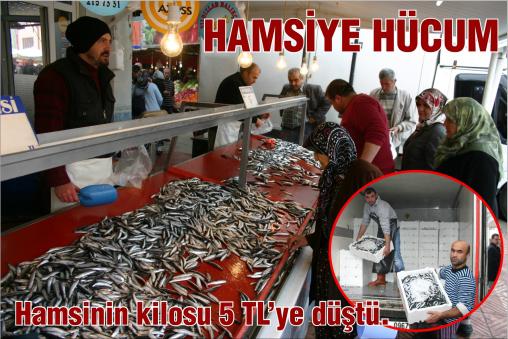 Deniz mahsulleri arasında en çok tüketilen hamsinin fiyatının 7 liradan 5 liraya düşmesi yüzleri güldürdü. Sinop ilinde yakalanan hamsiler, dün pazarda kurulan hamsi tezgahlarını hareketlendirdi. Kış aylarında en çok tüketilen hamsi vatandaşlar tarafından büyük ilgi gördü. Balık satıcıları, hamsinin kilosunun önceki günlerde 7 liradan satıldığını belirterek, “Hamsiler bizlere Sinop ilinden geldi. Hamsi çok yakalanınca ister istemez fiyatlarda düştü. Halkımız bol bol hamsi tüketsinler. Hem besin değeri yüksek, hem de fiyatlar çok makul” dediler.