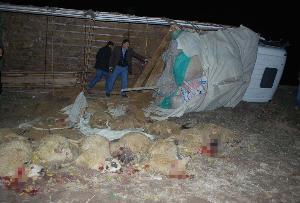 Çarpışmanın etkisiyle kamyon sürücüsü Arif Üresin ile yanında bulunan Arif ve Bahri Pişkin kamyon içerisinde sıkıştı. Yola savrulan hayvanlardan da 22'si telef oldu.