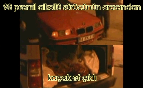 Dün gece saat 01.15 sıralarında, vatandaşlar 14 EK 318 plakalı otomobilin sürücüsünün direksiyon başında alkol aldığını görerek polise ihbarda bulundu. Polis takibe aldığı otomobili, Cumhuriyet Caddesi'nde durdurdu. Trafik ekibi, 21 yaşındaki Tarık Büyüksan'ın alkolmetre ile yaptığı ölçüm sonucu 98 promil alkollü olduğunu belirlerken, araçta arama yaptı. Otomobilin bagajında poşetler dolusu etler gören polis, Bolu Belediyesi Zabıta Müdürlüğü'ne bilgi verdi. Tarık Büyüksan etleri nereden aldığına dair cevap vermeyince, etler gelen zabıta aracına yüklendi. Tarık Büyüksan'ın ehliyetine el konulurken, araç ise çekiciye yüklenerek otoparka çekildi. Bu sırada Tarık Büyüksan, polislere, Arabayı bağladınız, bizi de Göynük'teki evimize kadar bırakın. Bırakmayacaksanız arabamı bağlamayın. Yatıracak yeriniz varsa da oraya götürün dedi.