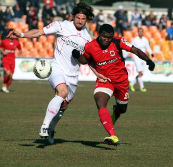 56'ncı dakikada Bolusporlu Emre'nin yaklaşık 30 metre mesafeden sert şutunda top yan direğe çarpıp auta gitti.