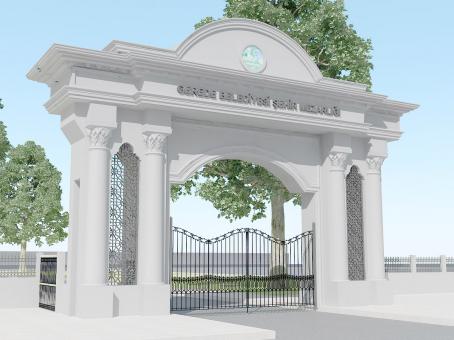 Mezarlık girişine yapılacak olan giriş takı; Bir adet geniş araç geçişine olanak sağlayan ana bölüm ile sağlı sollu konumlanan yaya geçişi için oluşturulmuş iki adet yaya giriş çıkışına sahip olacak. Ön görünüşünde dört adet mukarnas başlıklı sütun bulunacak. Üst kanopi kısmında "GEREDE BELEDİYESİ ŞEHİR MEZARLIĞI" yazısı bulunacak. Genel tasarım aşamasında Osmanlı motifleri içermesi esas alınarak o mimari özellikler göz önünde bulundurularak dizayn edilecek.
