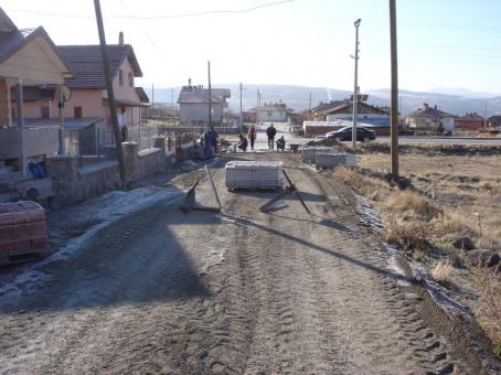 Daha yaşanabilir bir kent için çalışan Kıbrıscık Belediyesi ilçede çamurlu ve toprak yol bırakmama azmiyle, pastırma yazı değerlendirilerek Beypazarı caddesinde kilitli parke döşeme işi tamamlamaya çalışıyor.