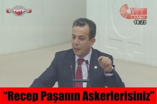 Cumhuriyet Halk Partisi Bolu Milletvekili Tanju Özcan, bedelli askerlik tartışmalarına TBMM Kürsüsünden katıldı. Ak Partili Milletvekillerini ağır dille eleştiren Özcan, “Hepiniz Recep Paşanın askerisiniz. Paşanın size verdiği emirleri uyguluyorsunuz” diyince mecliste ortalık karıştı.