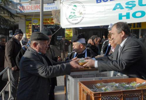 Kültür ve Sosyal İşler Müdürlüğü'ne bağlı Hayır Çarşısı tarafından organize edilen Aşure Günü kapsamında hazırlanan 10 bin tabak aşure, Belediye Meydanı'nda kurulan stantta Belediye Başkanı Alaaddin Yılmaz, Kültür ve Sosyal İşler Müdürü Güler Mert ve belediye personeli tarafından vatandaşlara dağıtıldı. Aşure dağıtımı sonrası açıklamalarda bulunan Belediye Başkanı Alaaddin Yılmaz, "Muharrem ayındaki bu önemli günleri Bolu Belediyesi olarak halkımızla paylaşmaya çalışıyoruz. İnşallah bu gelenek bizden sonra da sürekli olarak sürdürülür diyoruz. Muharrem ayı İslam alemi için çok önemli aylardan bir tanesi. Aşure de Nuh peygamberin kendine inananlar ile bindiği gemide kalan yiyeceklerin karışımı ile yaptığı yemeğin adı olarak anılır. Ayrıca Hz. Hüseyin'in şehit edilmesi de bu güne rastlamış olması acımızı bir kat daha artırdığı bir gündür. Allah böyle acıları bizlere bir daha göstermesin diyor, tüm İslam aleminin ve vatandaşlarımızın mübarek Muharrem ayını kutluyor, hayırlara vesile olmasını temenni ediyorum" dedi.