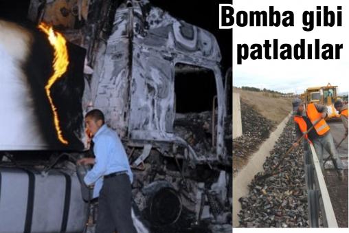 Bu arada sürtünmenin etkisiyle tırın dorsesinde bulunan parfüm şişeleri alev aldı. Dorsede bulunan parfüm kutuları bomba gibi patlayarak çevreye sıçradı. Kısa sürede alev topuna dönen tıra, olay yerine gelen itfaiye ekipleri parfüm şişelerinin patlaması nedeniyle güçlükle müdahale etti. Yaklaşık 1 saatlik çalışmayla söndürülen yangında tır, yanarak kullanılamaz hale geldi.