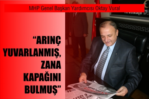 Bir dizi etkinlikler için Bolu’ya gelen ve MHP il binasında partililer, vatandaşlar ve basın mensuplarıyla sohbet eden MHP Genel Başkan Yardımcısı Oktay Vural, masanın üzerinde duran gazetemizi eline alıp okuyarak, haberlerimizle ilgili bilgiler aldı. Devlet Bakanı ve Başbakan Yardımcısı Bülent Arınç’ın, ‘Kürtlere bütün hakları verilecek’ sözlerine üzerine sinirlenerek, “Ne hakkı verilecek. AKP ile BDP rol arkadaşlığı yapıyor. Birileri silahla, birileri silahsız bu işi yapıyorlar. İkisinin arasında ne fark var. Bakın ikisinin açıklamalarına her şey ortada. Türkiye’ye iki koldan cendereye sokmak istiyorlar. Biri Kürtlere bütün haklar verilecek diyor, diğeri ise ülkemizden toprak istiyor. Yani Arınç yuvarlanmış, Zana kapağını bulmuş. Bunun Türkçe açıklaması ise tencere yuvarlanmış, kapağını bulmuş demek. Ama, bu anlam tekrar söylüyorum Arnıç yuvarlanmış, Zana kapağını bulmuştur” diye konuştu.